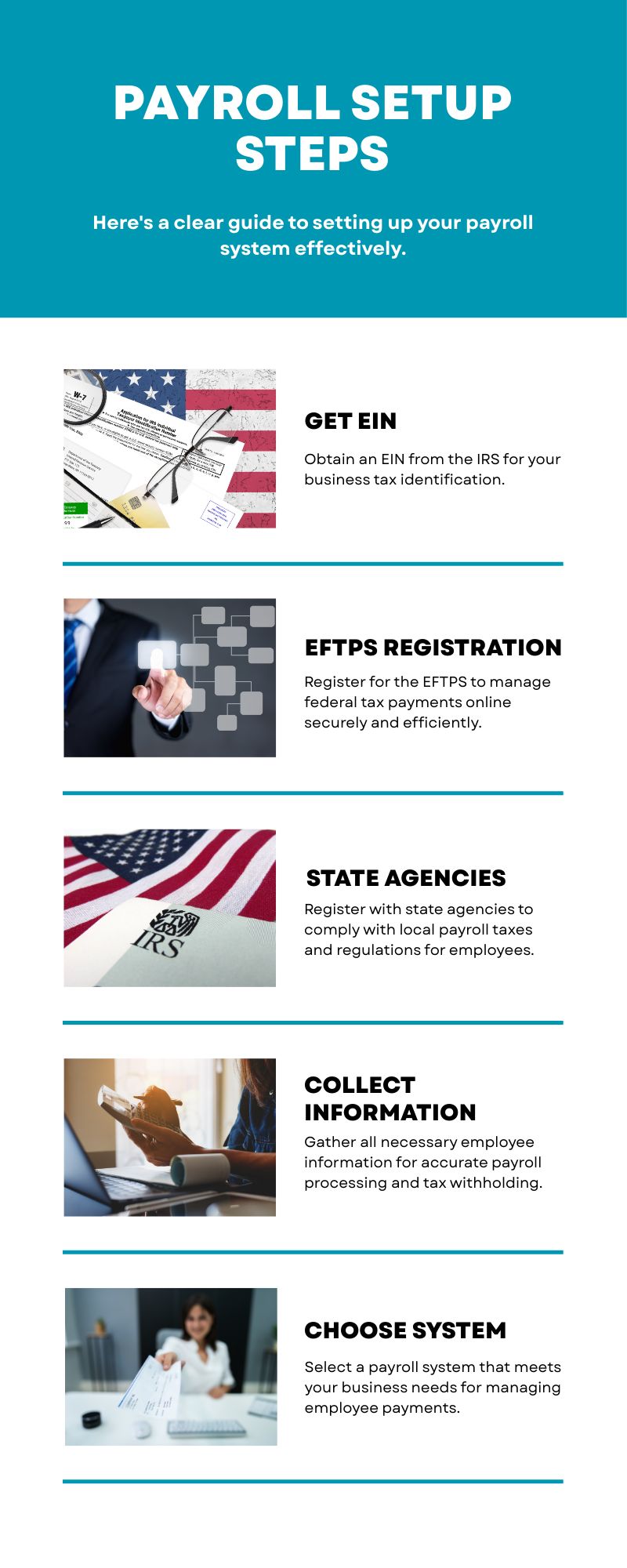 Pro Tip: Don't wait until after you've paid someone to set up payroll. The IRS requires you to have an Employer Identification Number (EIN) and proper tax accounts before making your first payment.